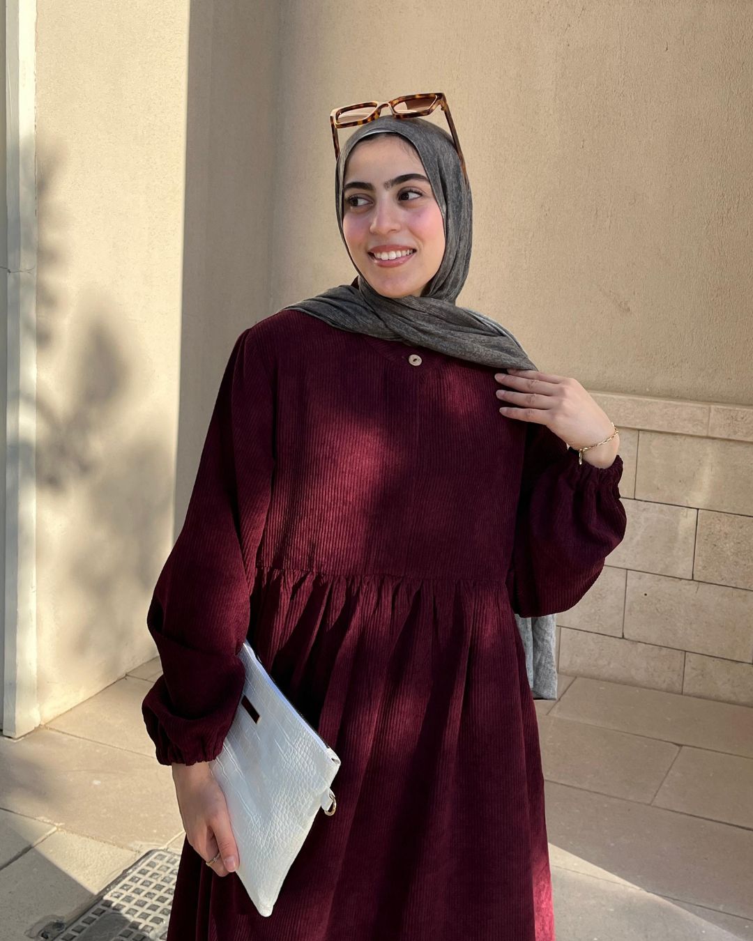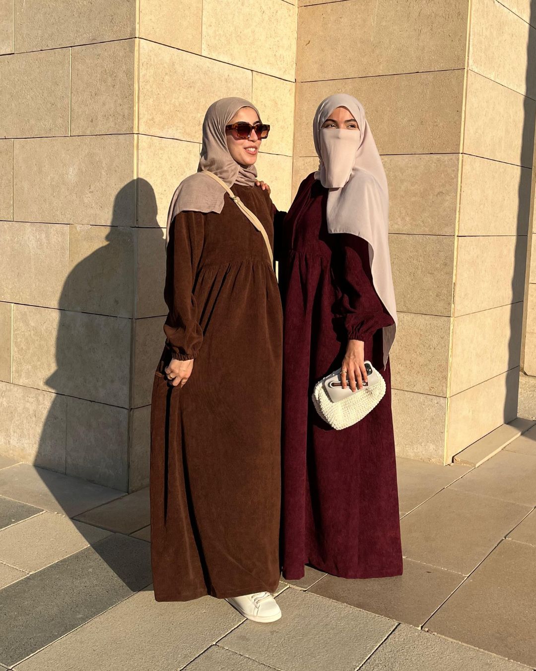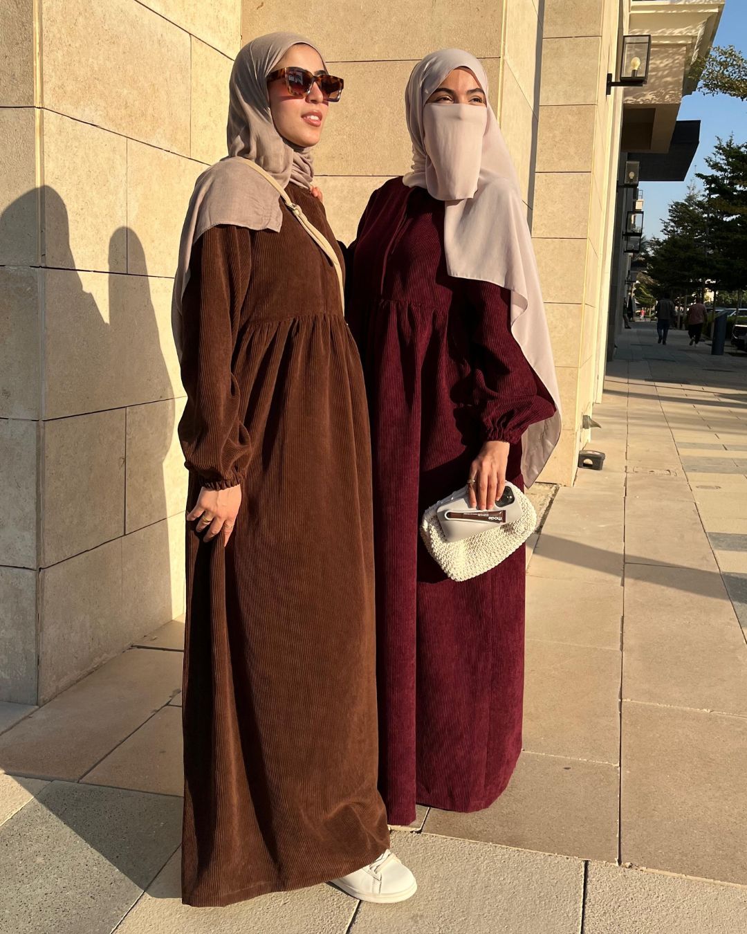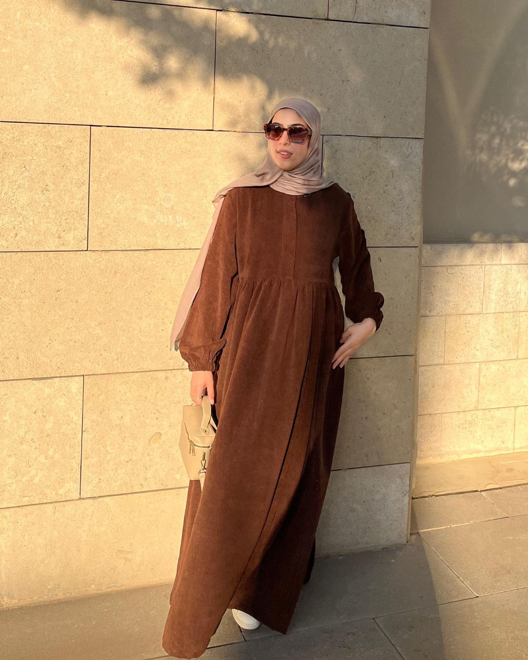 استمتعي بالدفء والأناقة في الشتاء مع فستان بخامة فخمة قطيفة مضلعة مستوردة