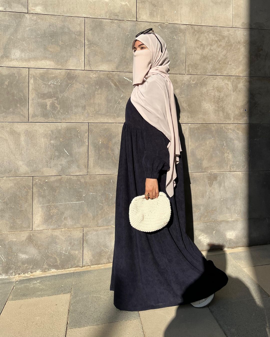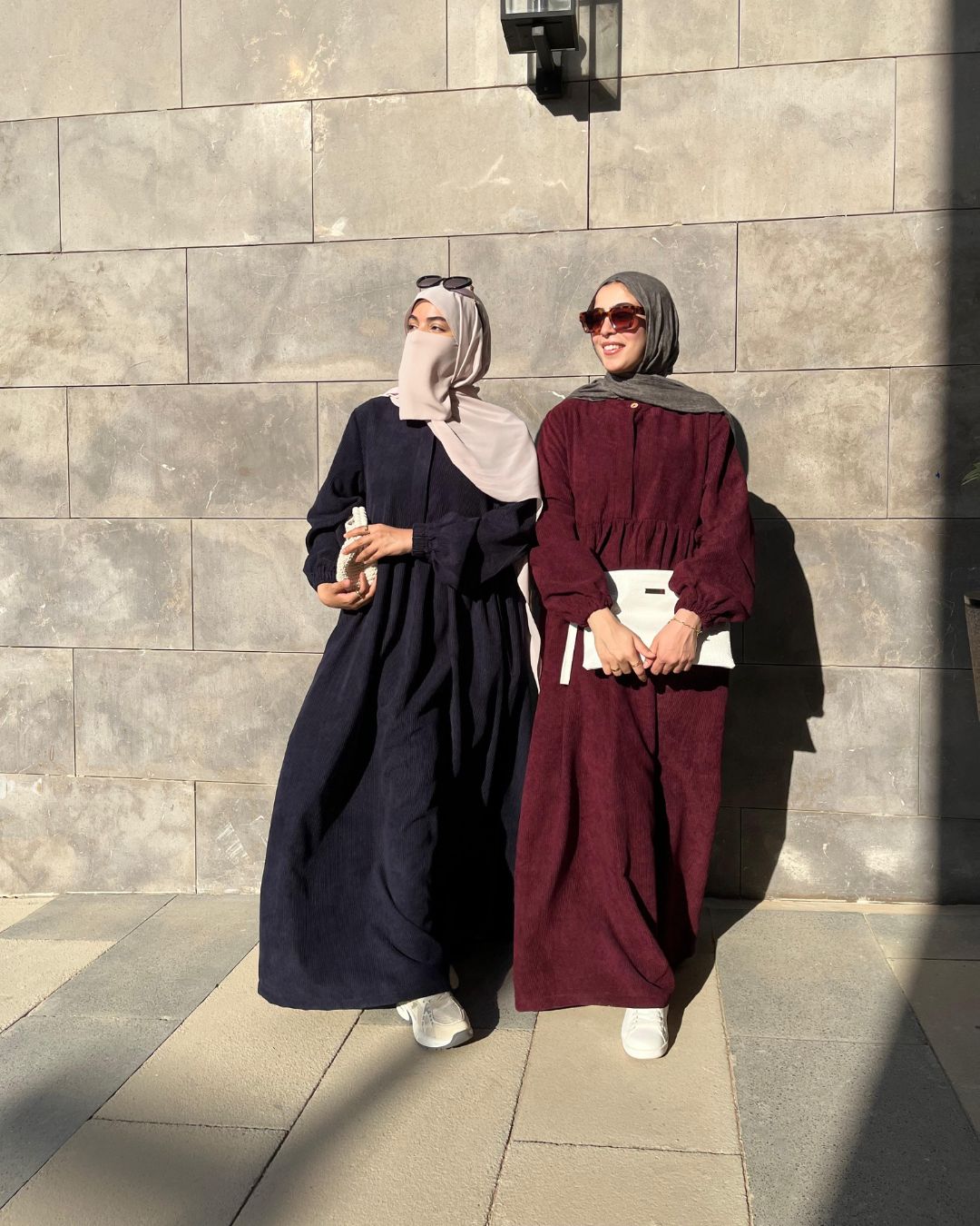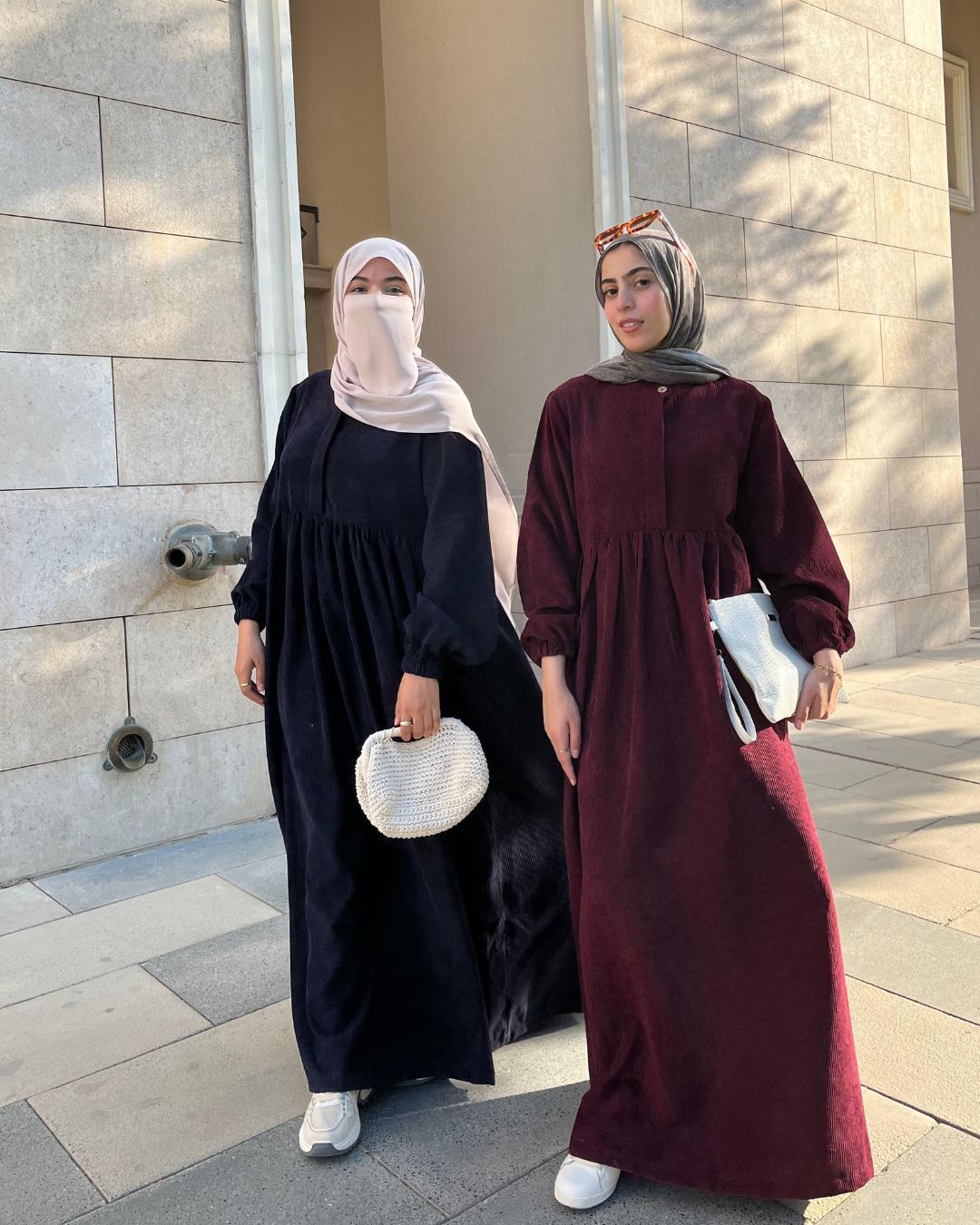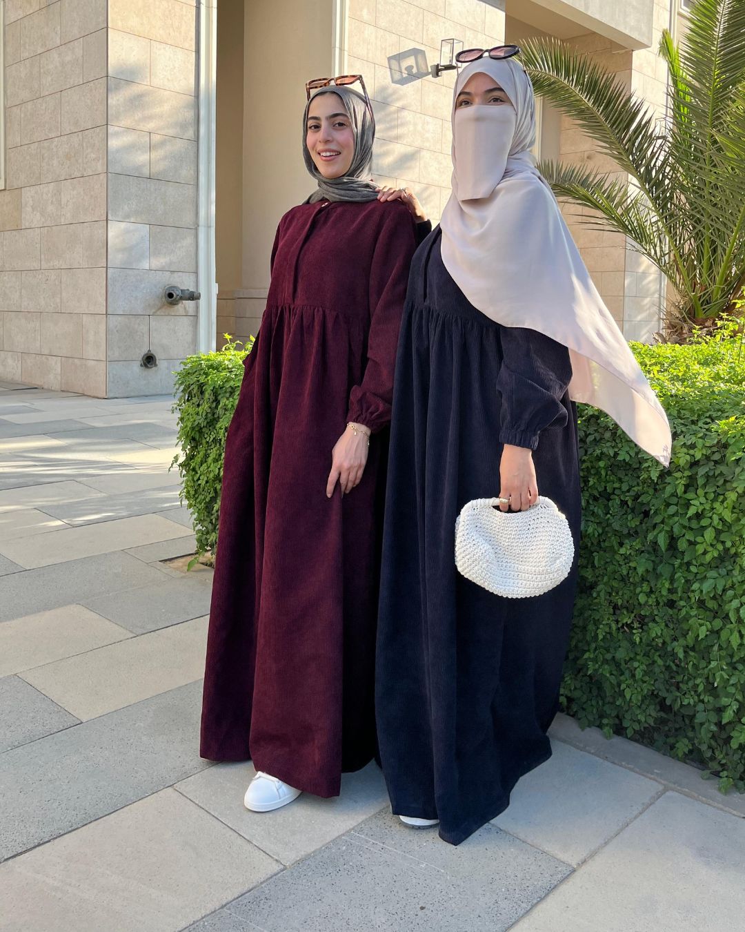 استمتعي بالدفء والأناقة في الشتاء مع فستان بخامة فخمة قطيفة مضلعة مستوردة