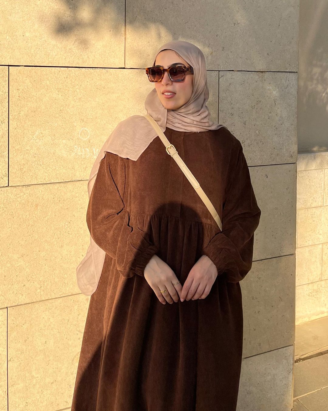 إطلالة شتوية محتشمة، عملية، وأنيقة تناسب الخروج اليومي أو الجلسات العائلية